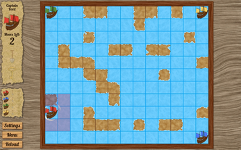 You can steer your ship across the sea with keyboard or mouse. Make landfall often to look for a key, a shovel and, of course, the treasure.